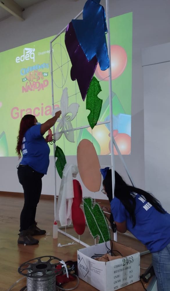 Detrás de la ejecución del alumbrado hay un equipo humano, año tras año vinculan mujeres artesanas a la empresa, quienes fabrican las figuras planas y con volumen que se pueden apreciar en los parques y calles del municipio.