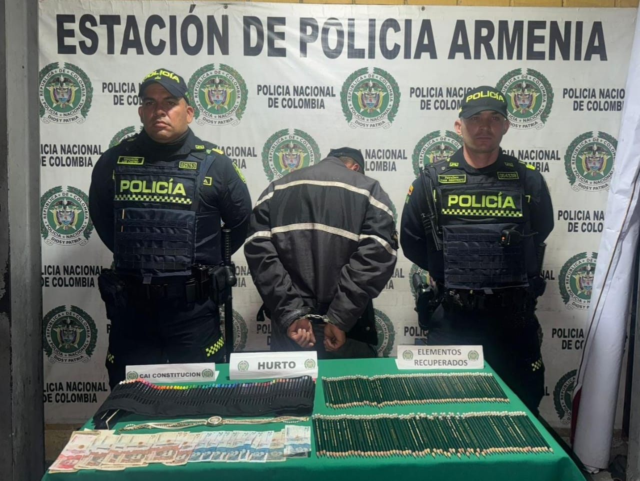 Uniformados de la Policía Nacional capturaron a un hombre, alias “Fabiolo”, en flagrancia tras el robo de un establecimiento comercial en Armenia.