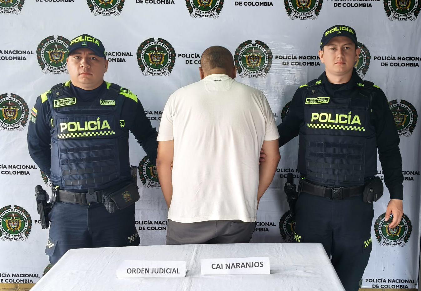 La detención se materializó sobre la calle 50, vía pública del barrio Los Naranjos. Durante labores de registro, control y solicitud de antecedentes, los agentes interceptaron al sujeto, sobre quien pesaba una orden de captura vigente emanada por el Juzgado Séptimo Penal Municipal de Armenia.