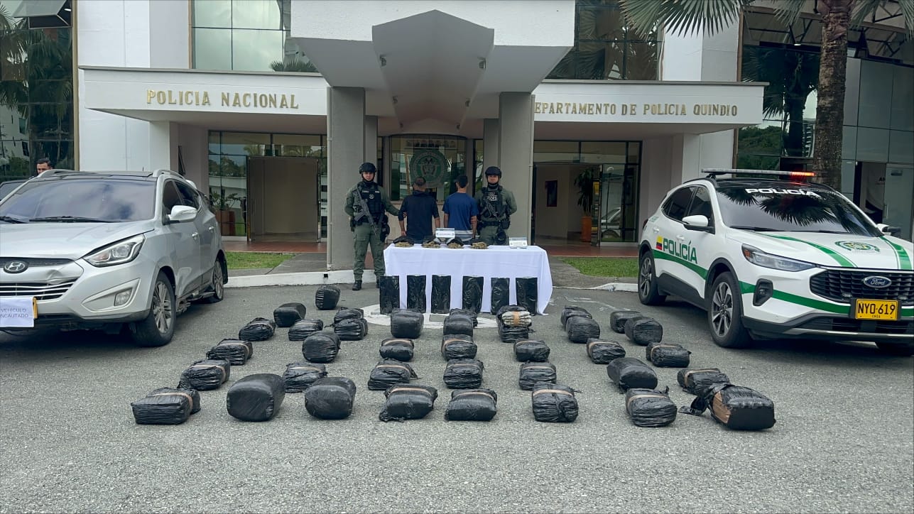 Capturados dos hombres con 140 kilos de marihuana tras persecución en zona rural de Calarcá