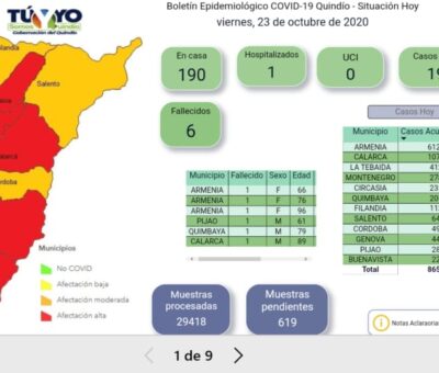 Leer másSegún el reporte de las autoridades de salubridad en el Quindío, en el Departamento del Quindío se reportaron en las últimas horas 191 casos positivos