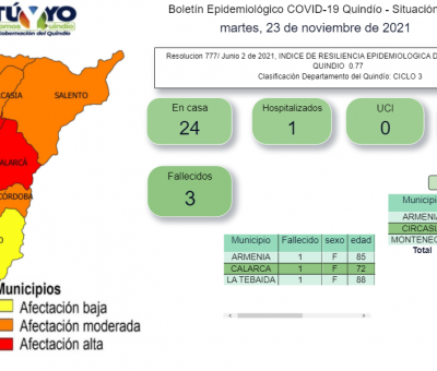 Según el boletín de epidemiológico de la secretaría de Salud departamental, hoy se registraron 36 casos nuevos de Covid-19 en el Quindío. Los cuale