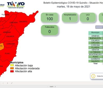 Leer más101 casos nuevos de Covid-19 este martes 18 de mayo en el departamento del Quindío, así lo reveló el boletín epidemiológico de la secretaría de Salud