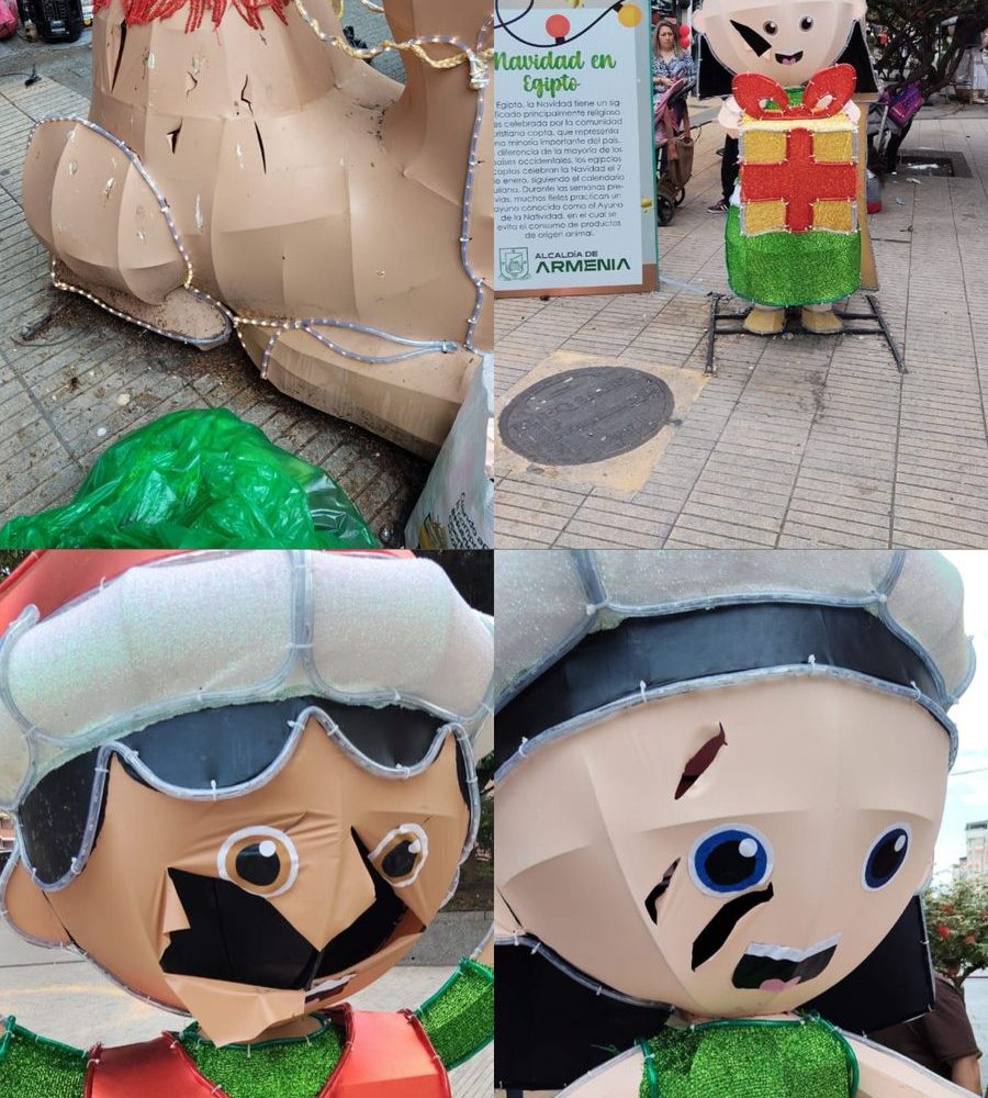 El reporte técnico señala que el incidente más grave se registró recientemente en el sector de Centro Comercial de Cielos Abiertos, donde varias figuras decorativas fueron destruidas parcialmente para extraer el cableado de alimentación. Asimismo, se han reportado daños recurrentes y robos de conductores eléctricos en las diferentes glorietas de la capital quindiana, lo que ha dejado tramos del alumbrado fuera de servicio.