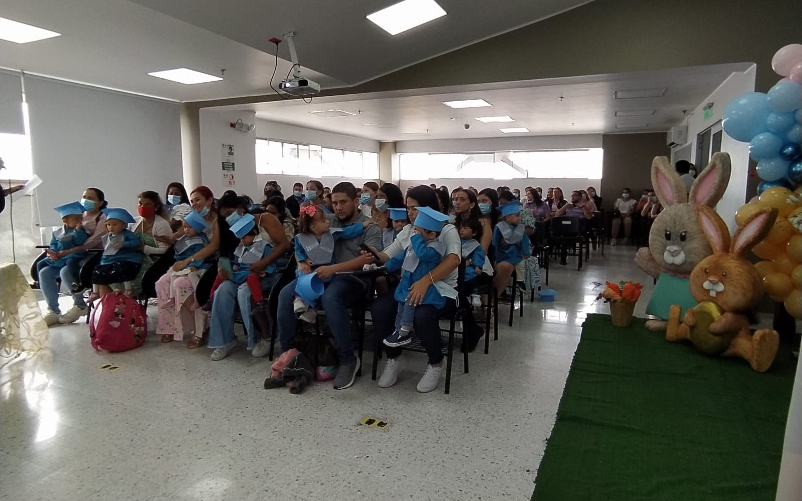 El pasado viernes 14 de abril, se llevó a cabo la primera graduación del programa “madre canguro” en las instalaciones del Hospital Departamental Universitario San Juan de Dios, en Armenia. En este evento conmemorativo se graduaron 43 niños acompañados de sus padres y que fueron nacidos en el año 2020 con afectaciones en su peso o nacieron prematuramente y necesitaban una atención especial para dar garantía a su correcto desarrollo. Múltiples disciplinas de la salud como oftalmología, pediatría, cardiología como también terapeutas hacen parte del programa.