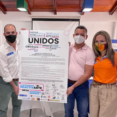 Este acuerdo, que hace parte de la estrategia Nodos y Mesas de Economía Naranja, enmarcado en el Plan Nacional Desarrollo 2019-2022 “Pacto por Colombia – Pacto por la Equidad”, busca desplegar la Política Integral de Economía Naranja a través de la articulación institucional, que incluya a los actores de la cuádruple hélice: Estado-Sociedad-Empresa-Universidad, para fortalecer el ecosistema cultural y creativo en el territorio, con el ánimo de convertir a la cultura y la creatividad en palancas de desarrollo local.