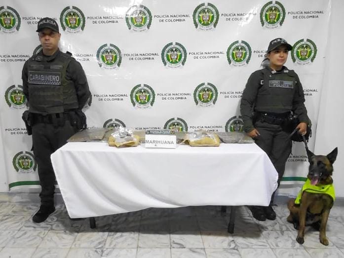 Tras la marcación del canino, los agentes procedieron a la apertura del paquete, encontrando en su interior: 8 paquetes prensados con una sustancia vegetal con características de la marihuana, un peso aproximado de 4 kilogramos y un valor comercial estimado en $1.400.000.