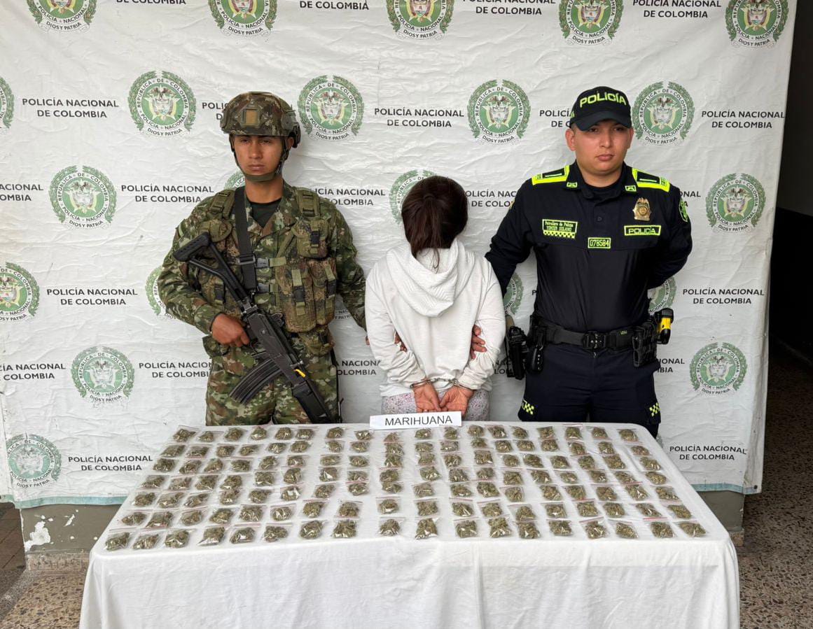 Mujer fue capturada en Montenegro con 125 bolsas plásticas herméticas de marihuana