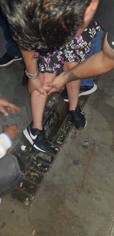 La falta de una rejilla sobre la carrera 14 con calle 15 provocó que a la niña que caminaba por allí se le fuera la pierna y sufriera una grave lesión.