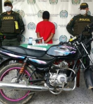 Se logró la incautación de un arma de fuego tipo pistola de fabricación artesanal, calibre 9 milímetros con 6 cartuchos y la recuperación de una motocicleta modelo 2015, avaluada en $2.500.000. Es de anotar que el sujeto capturado pertenecía al Grupo de Delincuencia Común Organizado “Los Memes” donde se desarticuló en el año 2018, y donde había sido condenado a 42 meses de prisión actualmente encontrándose con libertad condicional al momento de la captura