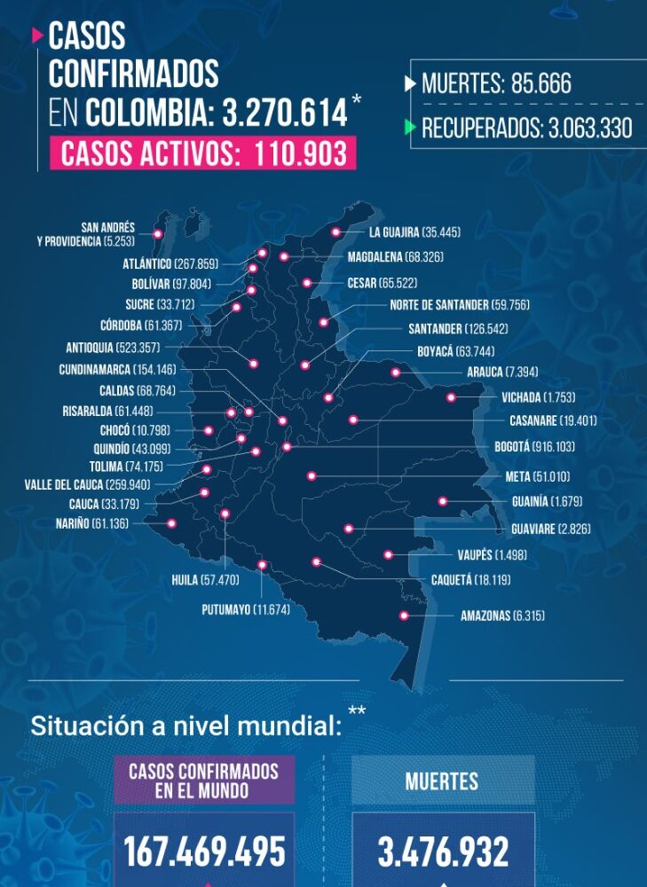 De acuerdo con el boletín epidemiológico de la secretaría de Salud departamental, se reportaron 5 personas fallecidas a causa del Covid-19, entre ellas una mujer de 27 años de edad en Armenia, con comorbilidad de enfermedad autoinmune.